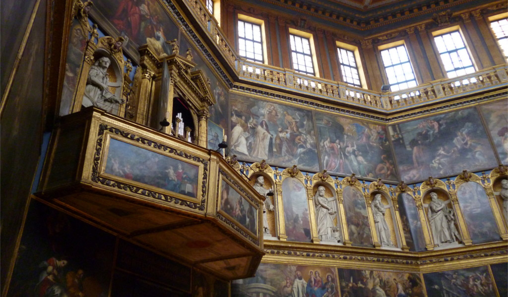 La storia della chiesa non fu priva di ostacoli: la cupola crollò poco dopo essere stata completata, richiedendo una nuova copertura nel 1606. Nel corso degli anni, l'interno della chiesa fu decorato lentamente, con nicchie, statue e quadri che conferirono un aspetto caratteristico al luogo di culto. La decorazione fu completata nel 1684.